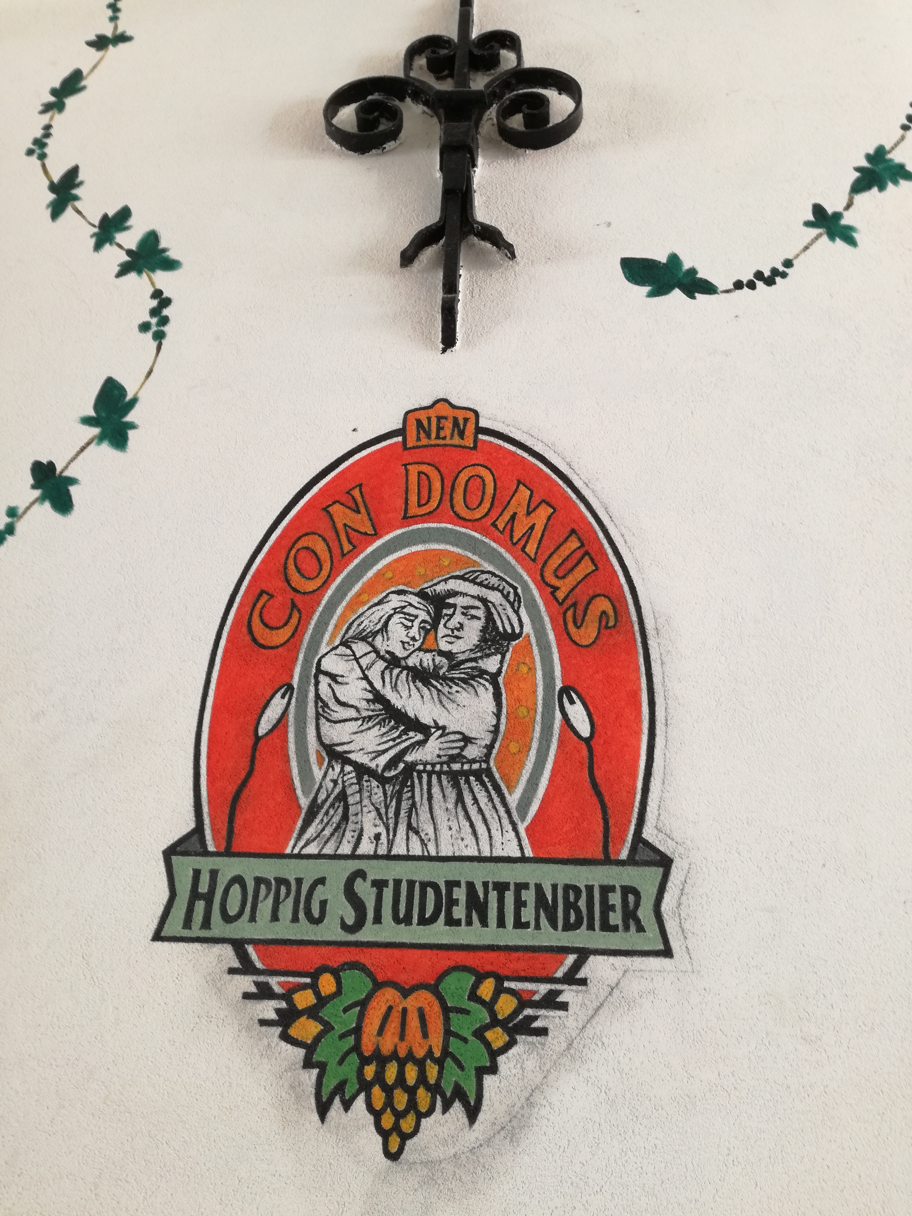 Een kleine brouwerij die rechtstreeks verbonden is met het café. Hier wordt nog met kleinschalige apparatuur ambachtelijk goede bieren gebrouwen. De Con Domus, een licht biertje voor studenten, en de Nostra Domus, een hoog gistingsbiertje, kan men het hele jaar door drinken. De huisbieren smaakten voortreffelijk konden we constateren bij de ruime lunch die we daar ook kregen. De mannen waren blij te horen van de rap pratende en vrolijke gids die ons rondleidde dat bier voor 93 % uit water bestaat, daar kun je goed mee thuiskomen na een avondje doorzakken :) En ook wat de gevolgen zijn van te veel water met hop drinken; iets met een bos hout voor de deur, ahum.