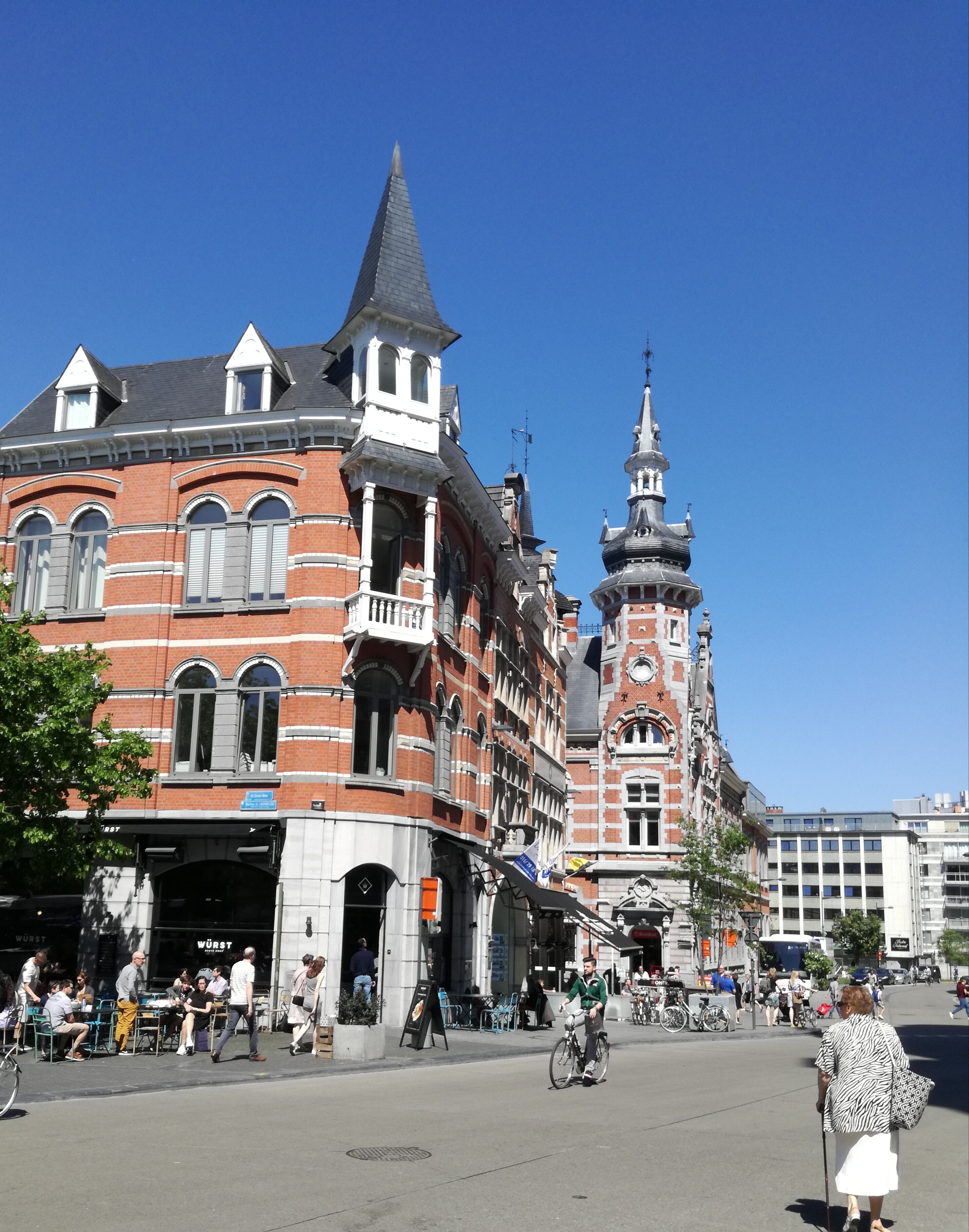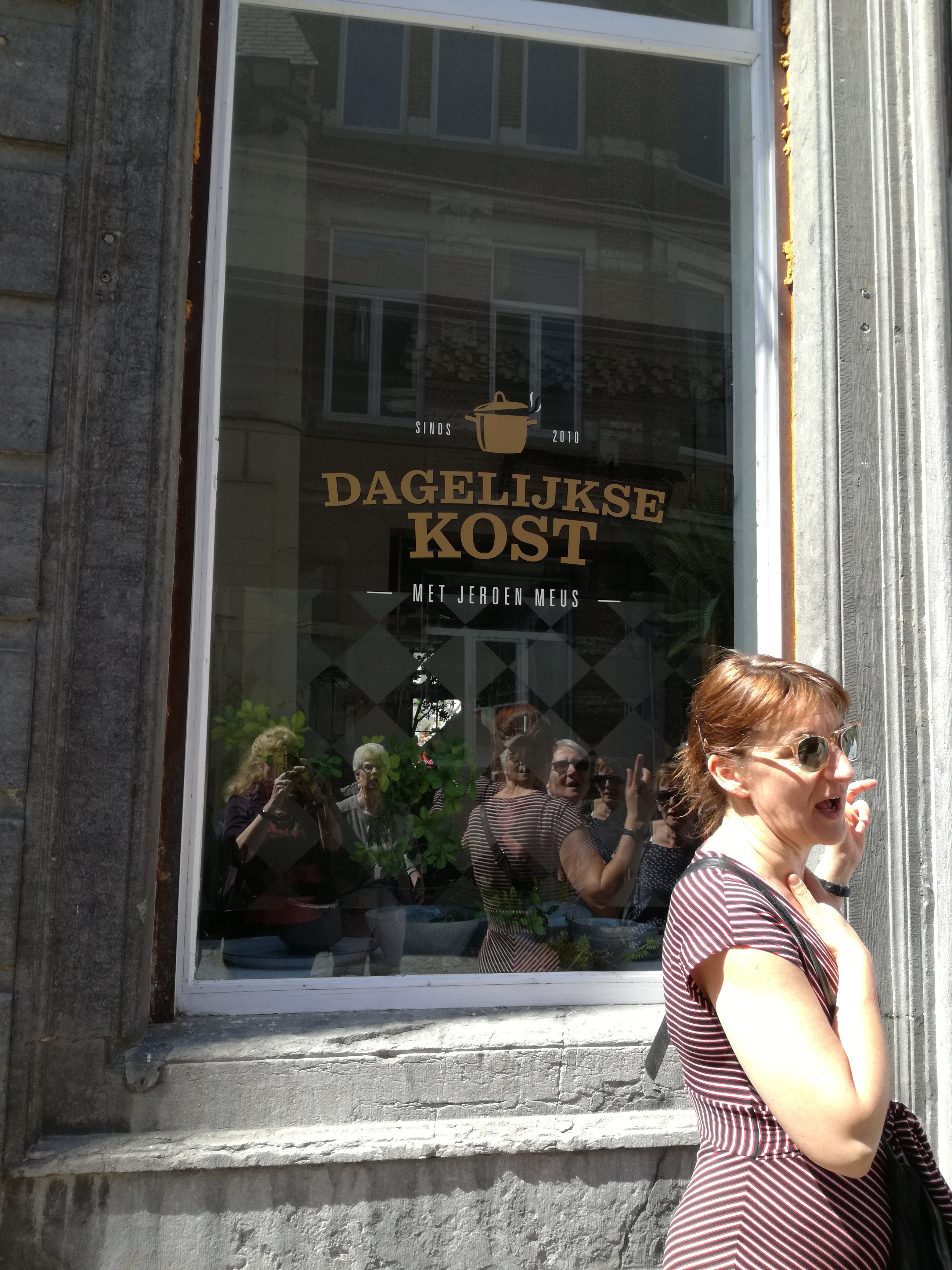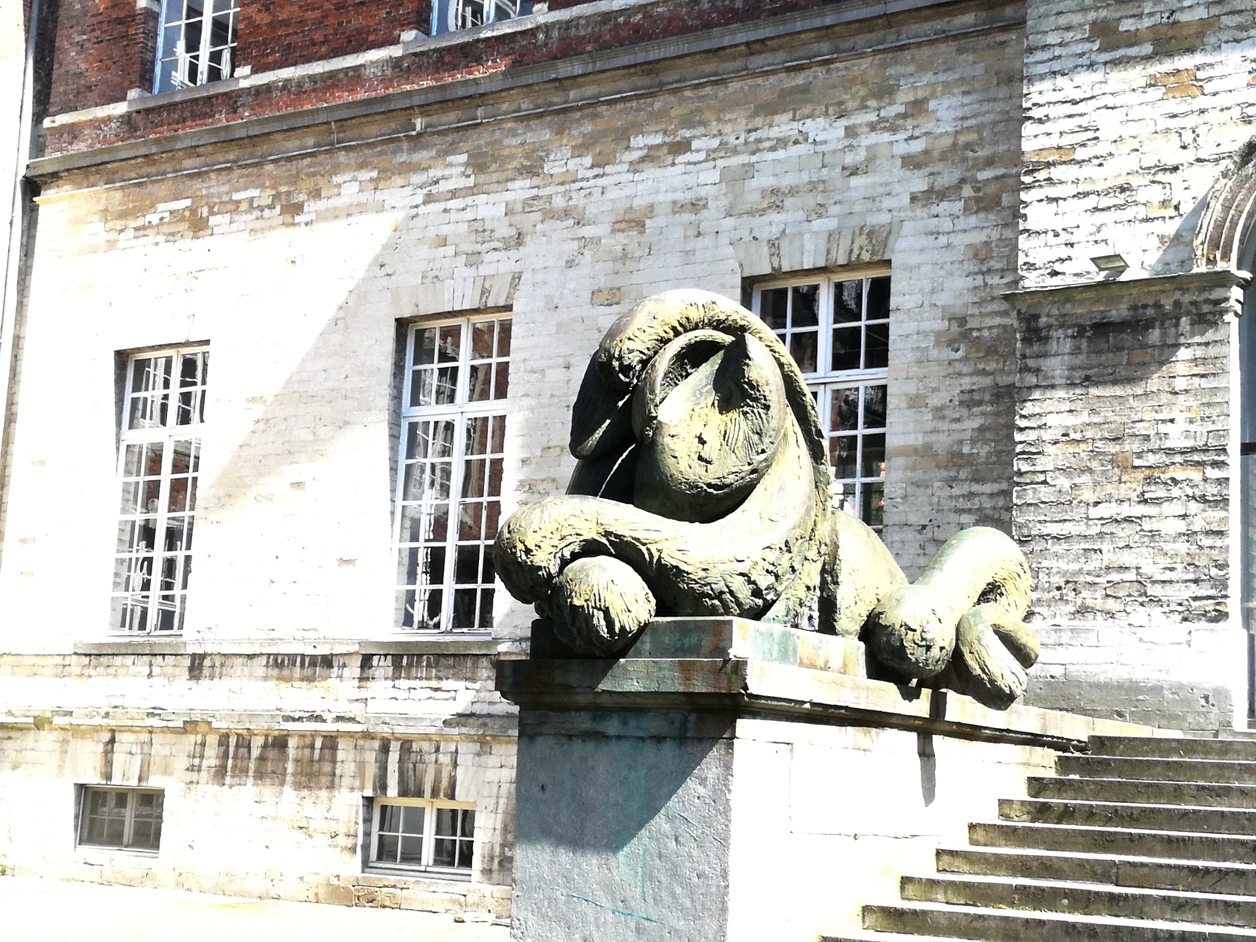 De andere groep hoorde het verhaal over de kotmadam van Leuven, zij is te bewonderen als een verrassend groot standbeeld midden op de markt en zij ziet eruit alsof ze zo met je aan wil pappen.
