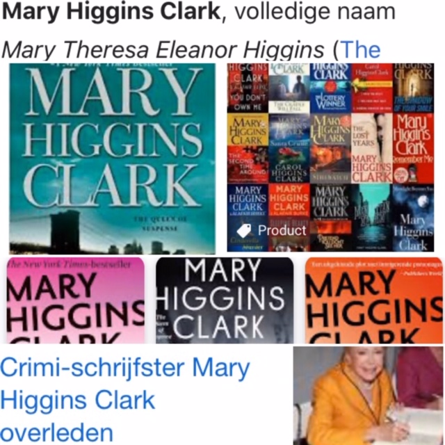 Misdaadschrijver Mary Higgins Clark is op 92 jarige leeftijd overleden. Ze schreef meer dan 50 boeken, daarvan werden ruim 100 miljard exemplaren verkocht. Dat leest als een succesvol leven maar afgaande op wat ze over het schrijverschap deelde was schrijven bloed, zweet en tranen en ook vaak financieel afzien.