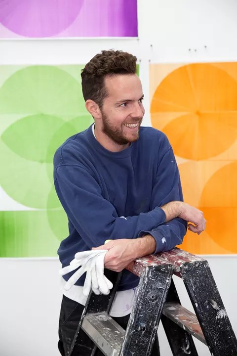 De kunstwerken van Thomas Trum (Rosmalen, 1989) zijn groot, opvallend en experimenteel door het kleurrijke, monochrome lijnenspel.